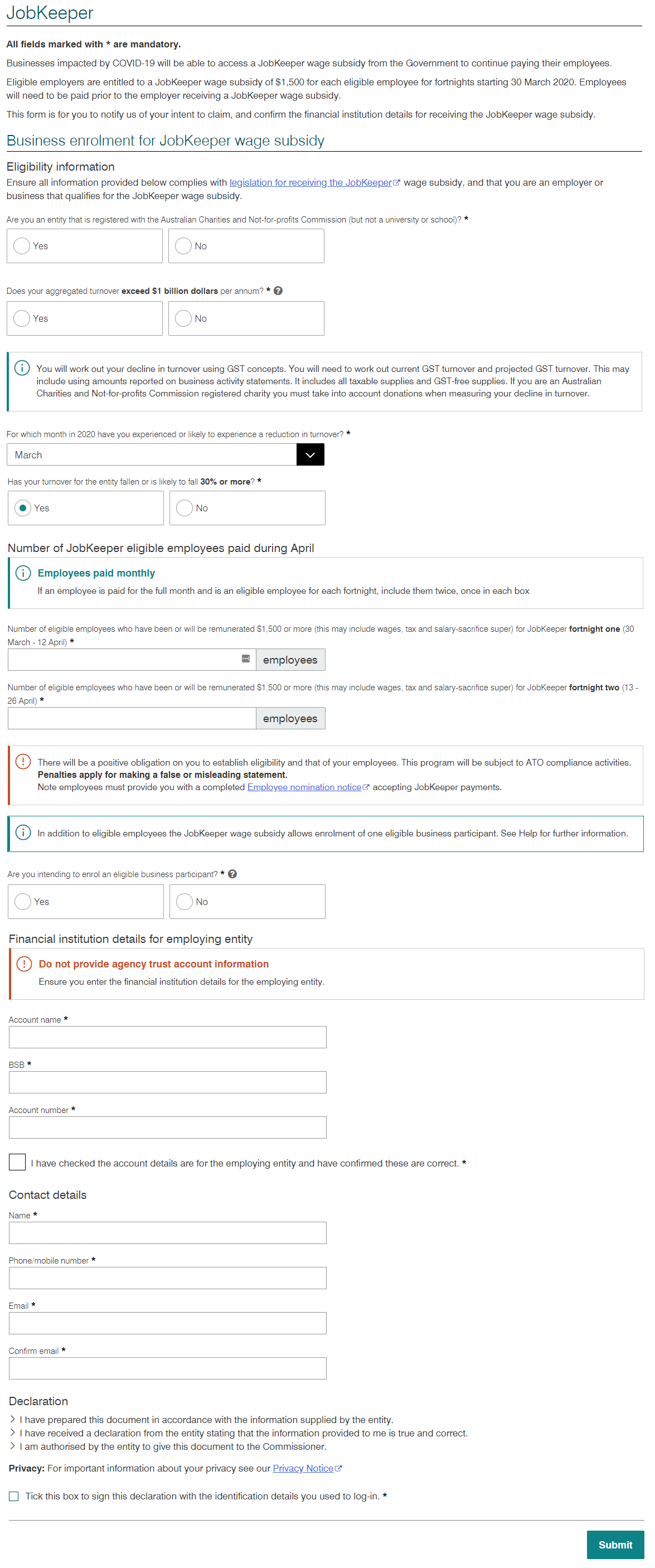 Hello between the enrolment for jobkeeper on 20 of april and the confirmation of employees on 4 of may will we get any confirmation of our eligibility. Your number of eligible employees. Hence people who register for vacation bible school can be eager to know the status of their submission. Thank you for completing and returning your jobkeeper employee nomination notice where you agreed to being nominated by us as your employer.